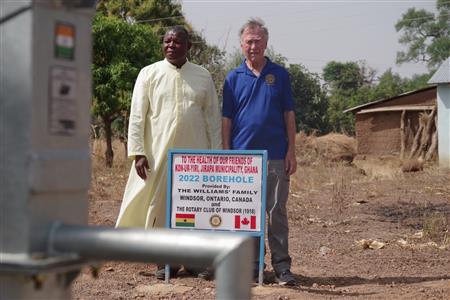 Dec 2022, the team including Dr. Godfrey Bacheyie, Bernadette Bacheyie, Ron Arkell, Cynthia Blanchard, Gordon Drake, Mary Lou Drake & Karen Howard, continued the tradition of bringing change to many of the problems that affect Ghana. Working collaboratively with Rotarian, Father Bennette, a Ghanaian & priest who lives in the region helps facilitate the work of the RCW (1918). Funds were donated to drill 9 wells, bringing the total count donated by the Rotary (1918) to 86. The club donated 500 insecticide-treated mosquito nets to pregnant & nursing mothers, to reduce sickness & death from malaria. The club also unveiled the Tony Howard Memorial Park in the Tankuri Village. Spearheaded by Karen Howard, in memory of her late husband Tony Howard. Additional funds were raised to support children at the Jirapa & Nakwabi orphanages. Our partners at the Rotary Club of Wa in Ghana are essential to ensure that any money raised is used strategically in ways that will create the biggest impact